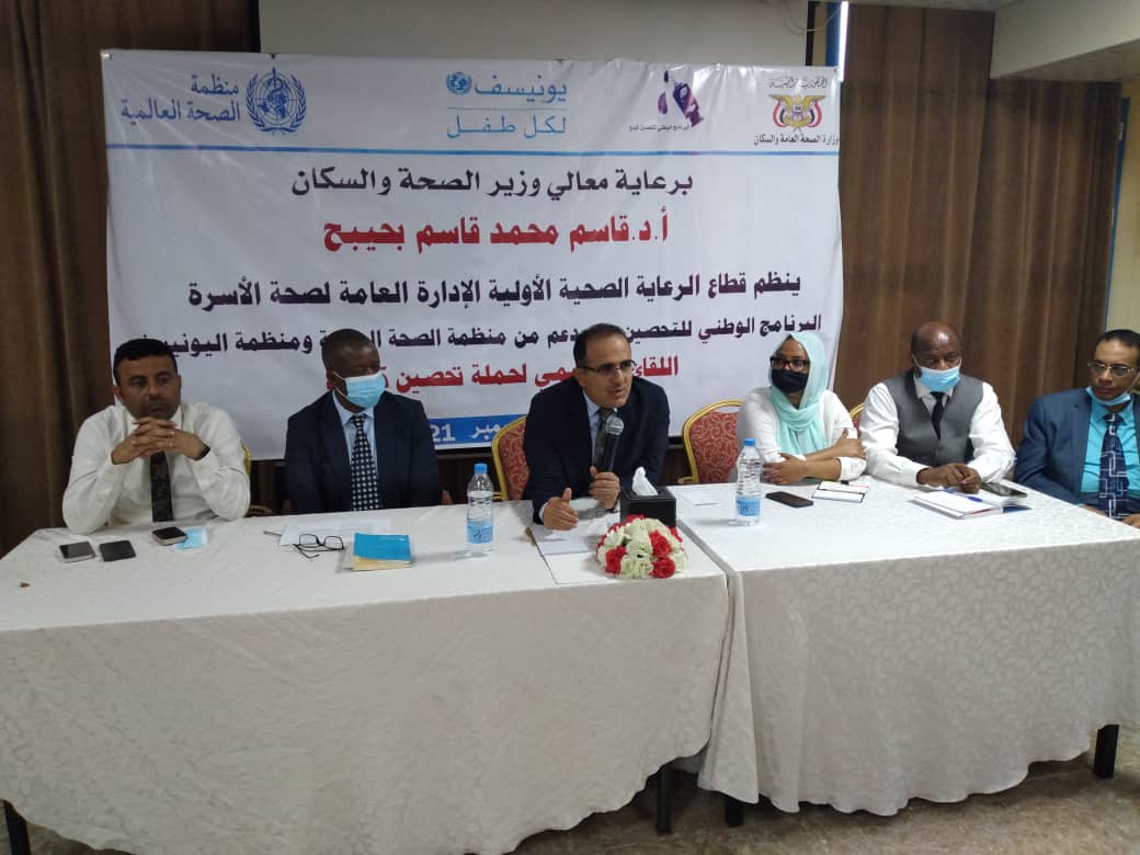 من جانبه استعرض وكيل وزارة الصحة لقطاع الرعايه الاولية الدكتور علي الوليدي الوضع الوبائي الراهن في البلاد وجملة الصعاب التي اعترضت الفرق الميدانية والنجاحات المحققة لفرق التحصين وغرفة عمليات كوفاكس.