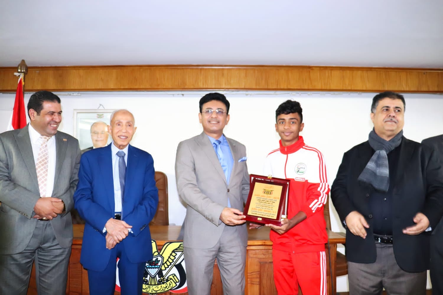 وكرم مارم والمجاهد، رئيس بعثة منتحب الناشئين احمد مهدي سالم عضو الاتجاد، ومدرب المنتخب الكابتن قيس محمد صالح وبقية الجهاز الفني والاداري والاعلامي للمنتخب بدروع تذكارية مقدمة من السفارة اليمنية بالقاهرة.
