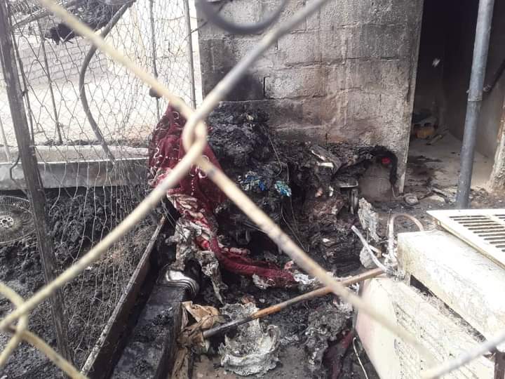 وتظهر الصور التي نشرتها الوحدة آثار الحريق المروع الذي التهم أثاث ومسكن الأسرة النازحة في المخيم، والذي قالت إنه “مكون من شبكتين”.
