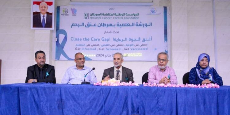 اقامت المؤسسة الوطنية لمكافحة السرطان في عدن بالشراكة مع مركز رنين عدن التشخيصي، وبالتنسيق مع وزارة الصحة العامة والسكان، اليوم، في العاصمة المؤقتة عدن، ورشة علمية حول سرطان عنق الرحم، تحت شعار “اغلق فجوة الرعاية”، بمشاركة 50 طبيبة اخصائية في الصحة الانجابية والمجالات التشخيصية من محافظات عدن، وأبين، ولحج، وذلك بمناسبة الأسبوع العالمي للتوعية بسرطان عنق الرحم.