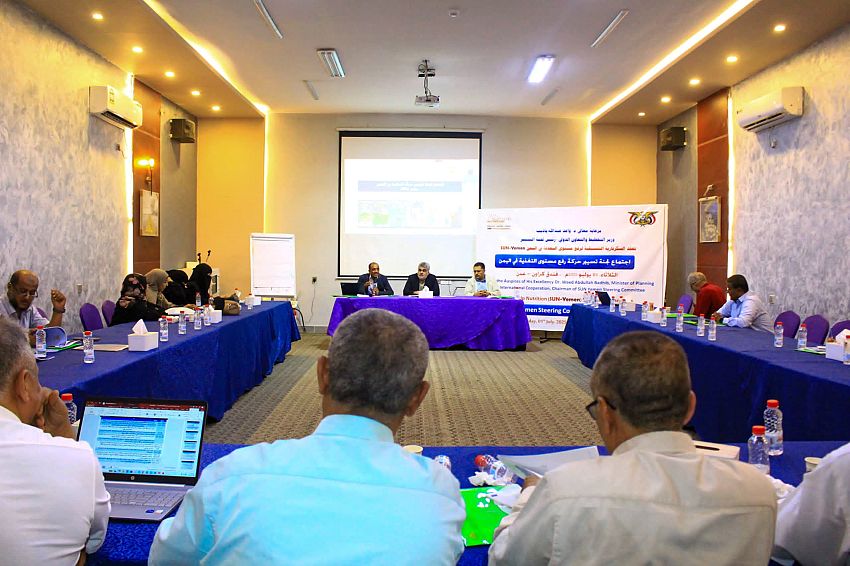 عقدت السكرتارية التنسيقية لرفع مستوى التغذية في اليمن الـ (SUN)، اليوم، في العاصمة المؤقتة عدن، اجتماع لجنة تسيير حركة رفع مستوى التغذية في اليمن، برئاسة نائب وزير التخطيط والتعاون الدولي منسق حركة التغذية في اليمن، الدكتور نزار باصهيب.
