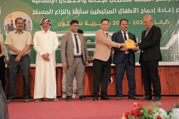 كما شهد العامري، اليوم الأحد، حفل اختتام مشروع إعادة إدماج الأطفال المرتبطين سابقاً بالنزاع المسلح – الدفعة الثانية، وذلك ضمن برنامج “كفاك” للعام 2024–2025، الممول من مركز الملك سلمان للإغاثة والأعمال الإنسانية.