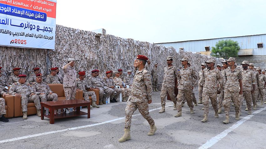 دشنت القاعدة الإدارية في العاصمة المؤقتة عدن اليوم المرحلة الثانية من العام التدريبي والعملياتي والقتالي للعام 2025م بحضور مساعد وزير الدفاع للشؤون اللوجستية اللواء الركن الدكتور صالح حسن ورئيس هيئة العمليات المشتركة اللواء الركن صالح علي، ورئيس هيئة الإسناد اللوجستي اللواء الركن عبدالعزيز الفقيه، ونائب المفتش العام اللواء الركن مسفر الحارثي، وقائد محور تعز اللواء الركن خالد فاضل، ونائب رئيس هيئة الإسناد اللوجستي اللواء الركن علي الفضلي.