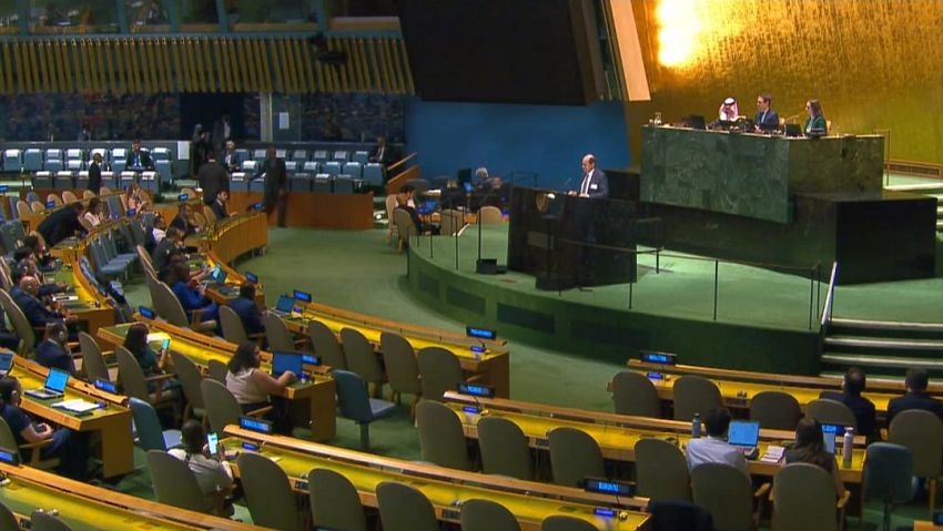 جاء ذلك في بيان في بيان الجمهورية اليمنية الذي القاه وزير الخارجية وشؤون المغتربين، الدكتور شائع الزنداني، اليوم، في المؤتمر الدولي رفيع المستوى المعني بتنفيذ قرارات الأمم المتحدة المتعلقة بالتسوية السلمية لمسألة فلسطين.