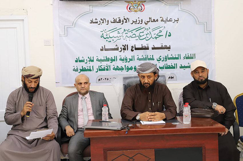 عقد قطاع الإرشاد بوزارة الأوقاف والإرشاد، اليوم الاربعاء، في العاصمة المؤقتة عدن، لقاءً تشاورياً لمناقشة الرؤية الوطنية، لترشيد الخطاب الديني ومواجهة الافكار المتطرفة.