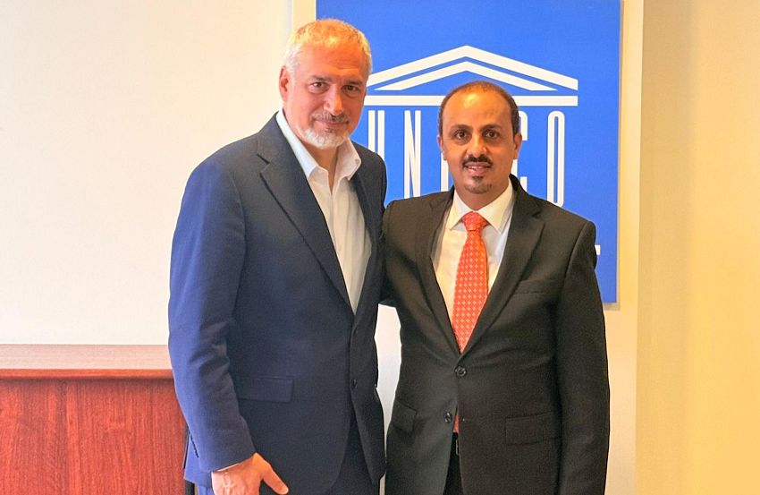 بحث وزير الإعلام والثقافة والسياحة معمر الإرياني، اليوم، مع نائب المدير العام في منظمة الأمم المتحدة للتربية والعلم والثقافة (اليونسكو)، إرنستو أتونو أوجه التعاون القائم بين بلادنا والمنظمة، وجهود صون التراث الثقافي اليمني المادي واللامادي، وتعزيز الشراكة في مجالات الثقافة وحماية المواقع الأثرية.