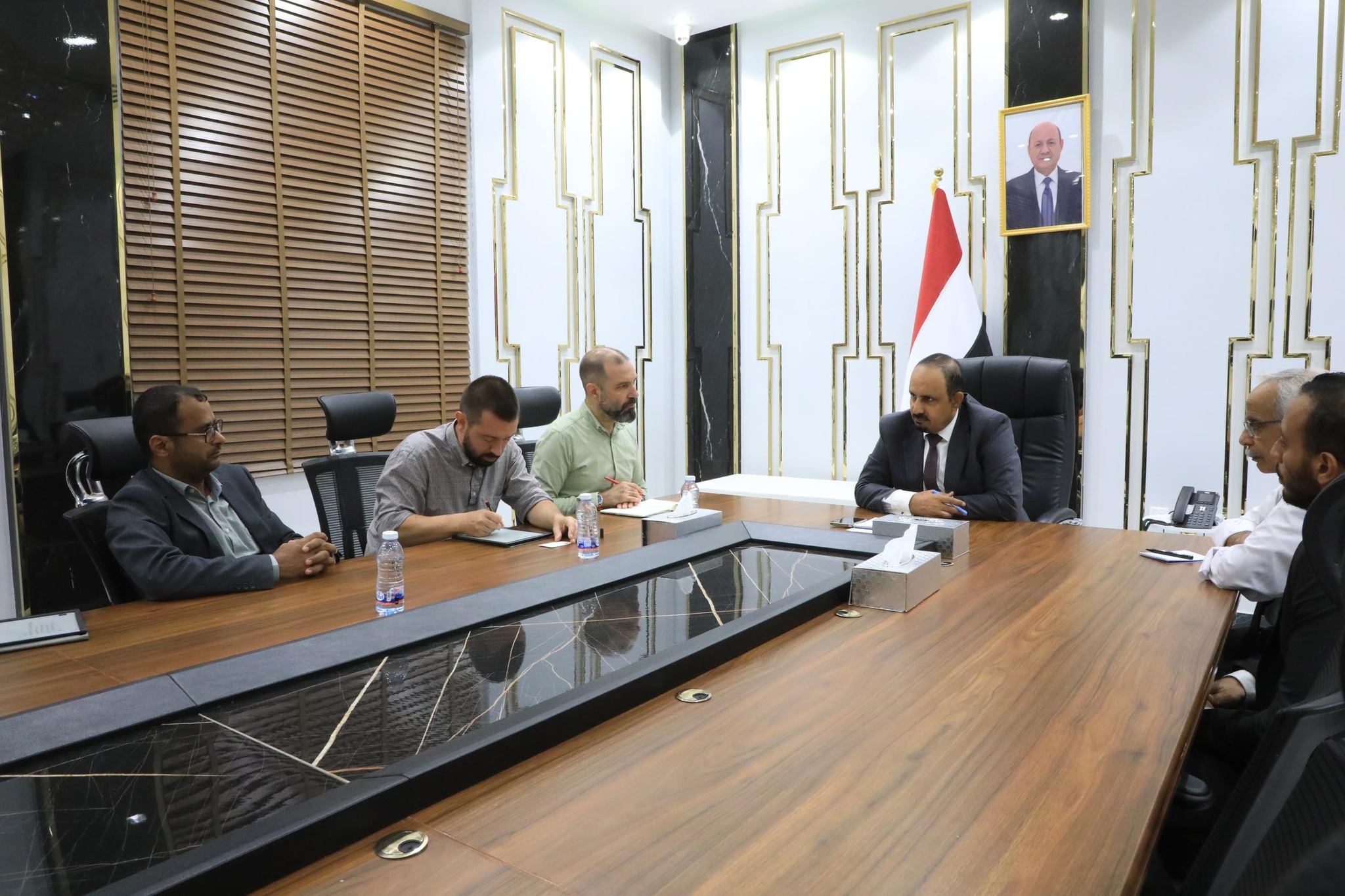 بحث محافظ حضرموت مبخوت بن ماضي، اليوم، مع وفد المعهد الأوروبي للسلام برئاسة ثانوس بيتوريس، جهود المعهد الأوروبي للسلام.