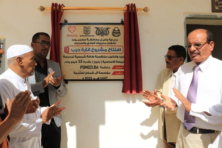 افتتح وكيل محافظة حضرموت المساعد لشؤون مديريات الوادي والصحراء عبدالهادي التميمي، اليوم، ومعه مدير عام مديرية تريم عبدالكريم بابطاط، مشروع “إنارة درب 3” في مديرية تريم، الذي نفذته مؤسسة آل شملان للتنمية، بإشراف مكتب وزارة التربية والتعليم بوادي وصحراء حضرموت، وبتمويل من منظمة POMOZI.BA.