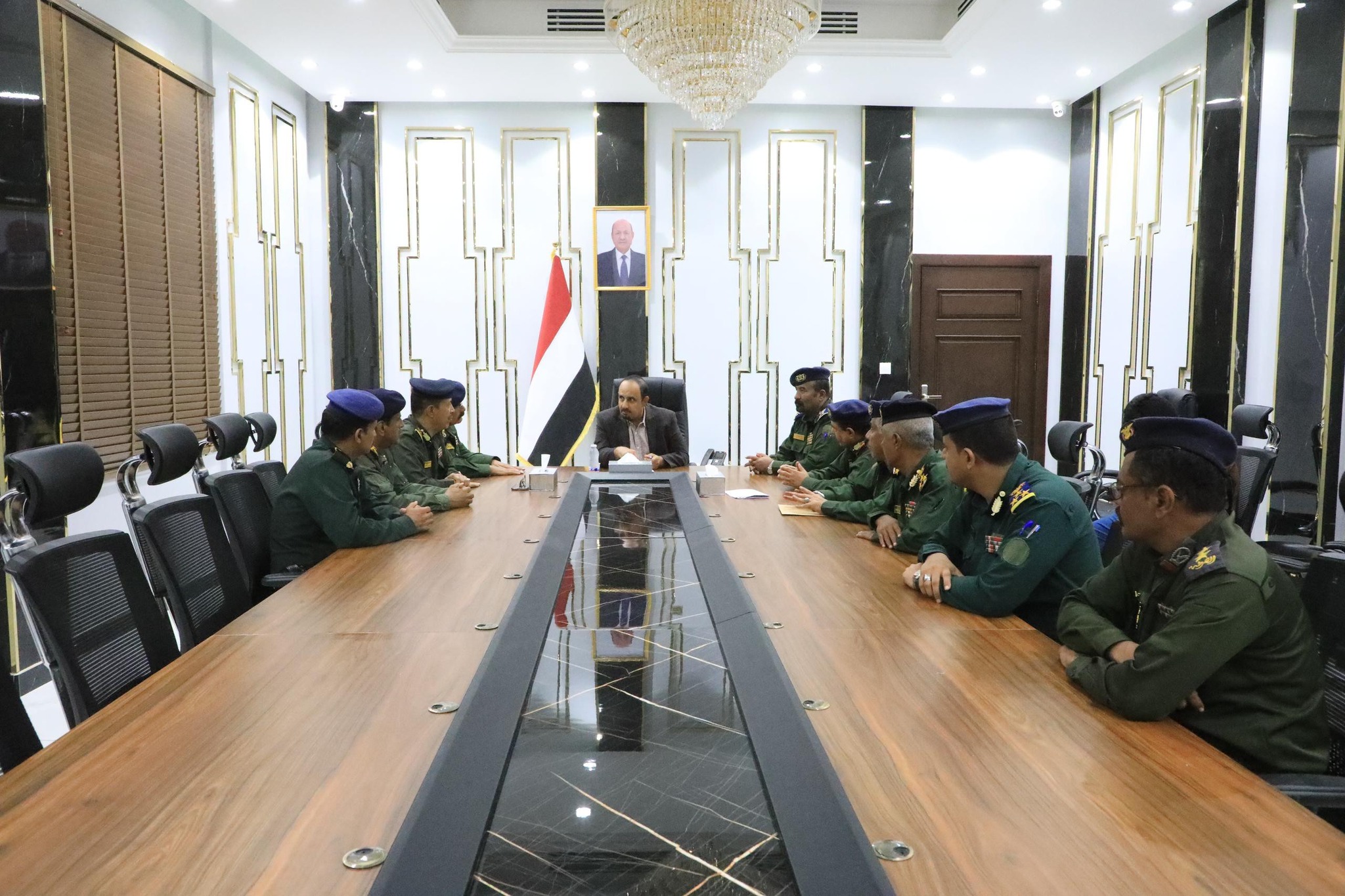 استقبل محافظ حضرموت رئيس اللجنة الأمنية بالمحافظة مبخوت مبارك بن ماضي، اليوم في المكلا، وفدًا رفيعًا من وزارة الداخلية برئاسة وكيل الوزارة لقطاع الأمن اللواء محمد مساعد الأمير، ووكيل الوزارة لقطاع الخدمات اللواء عبدالماجد برك العامري، ووكيل الوزارة لقطاع الموارد اللواء قائد عاطف، و بحضور نائب رئيس أكاديمية الشرطة العميد خالد صالح عوض، ومدير عام الأمن والشرطة بساحل حضرموت العميد مطيع المنهالي، ومديري عموم الإدارات والمرافق الأمنية بوزارة الداخلية.