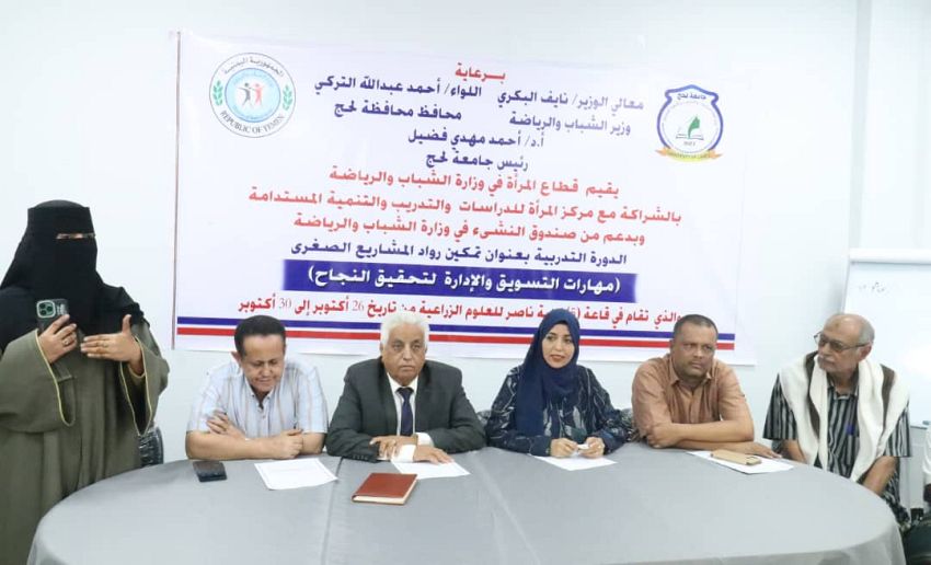 دشن قطاع المرأة بوزارة الشباب والرياضة، اليوم الأحد، الدورة التدريبية بعنوان “تمكين رائدات المشاريع الصغرى – مهارات التسويق والإدارة لتحقيق النجاح”، والتي ينظمها القطاع بالشراكة مع مركز المرأة للدراسات والتدريب والتنمية المستدامة بمحافظة لحج، وبدعم من صندوق النشء والشباب.