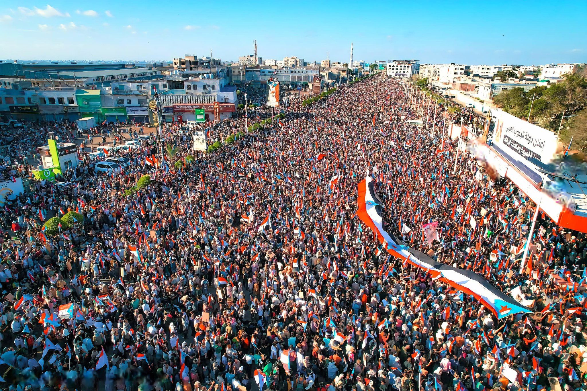 ووجه التحية لهذا الشعب العظيم المحتشد اليوم ضد الأخطاء بحق الجنوب، ونؤكد لكم ؛لن نخذلكم أبداً، وسنبقى أوفياء لعهدنا معكم، مدافعين عن حقوقكم، وحماة لإرادتكم مهما كانت التحديات.