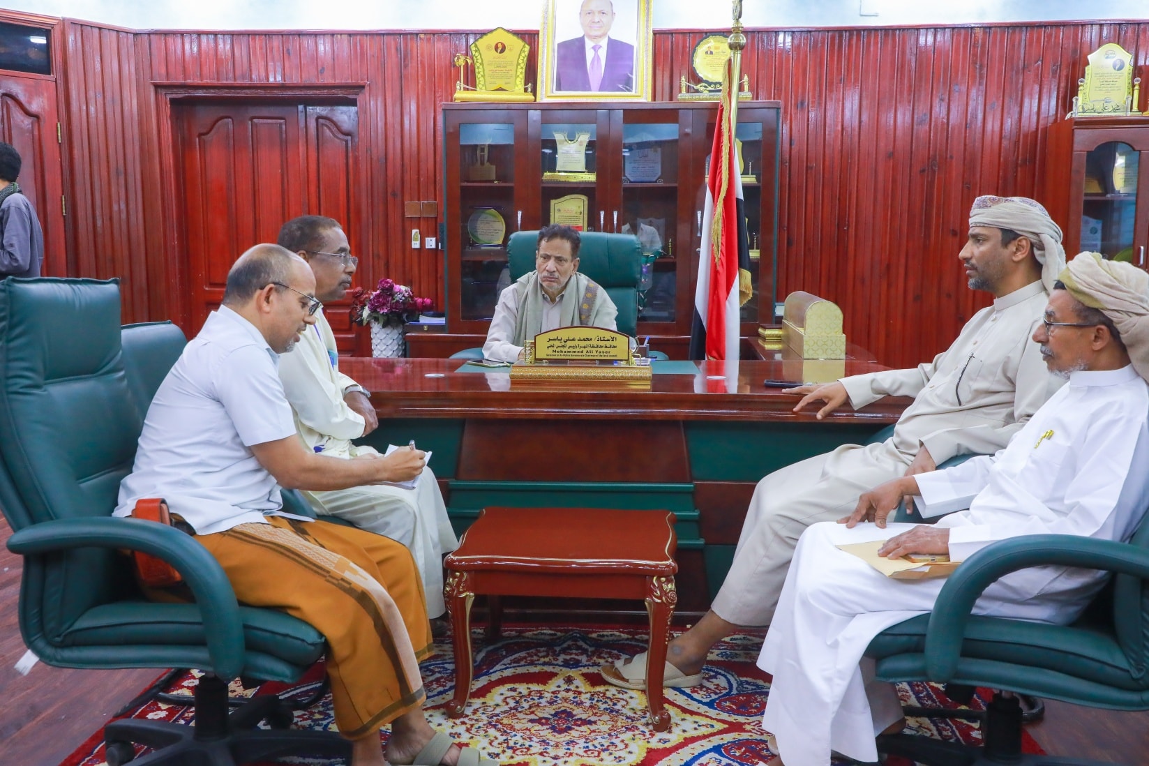 استمع محمد علي ياسر، محافظ محافظة المهرة، إلى شرحٍ من مدير عام مكتب الصحة والسكان بالمحافظة الدكتور عوض مبارك، ونائبه مبارك بن مزيون، حول مجمل الأوضاع الصحية في المحافظة، واحتياجات المرافق الطبية من الوقود اللازم لتشغيل المراكز الصحية والمستشفيات، بما يضمن استمرارية الخدمات الطبية للمواطنين في مختلف المديريات.