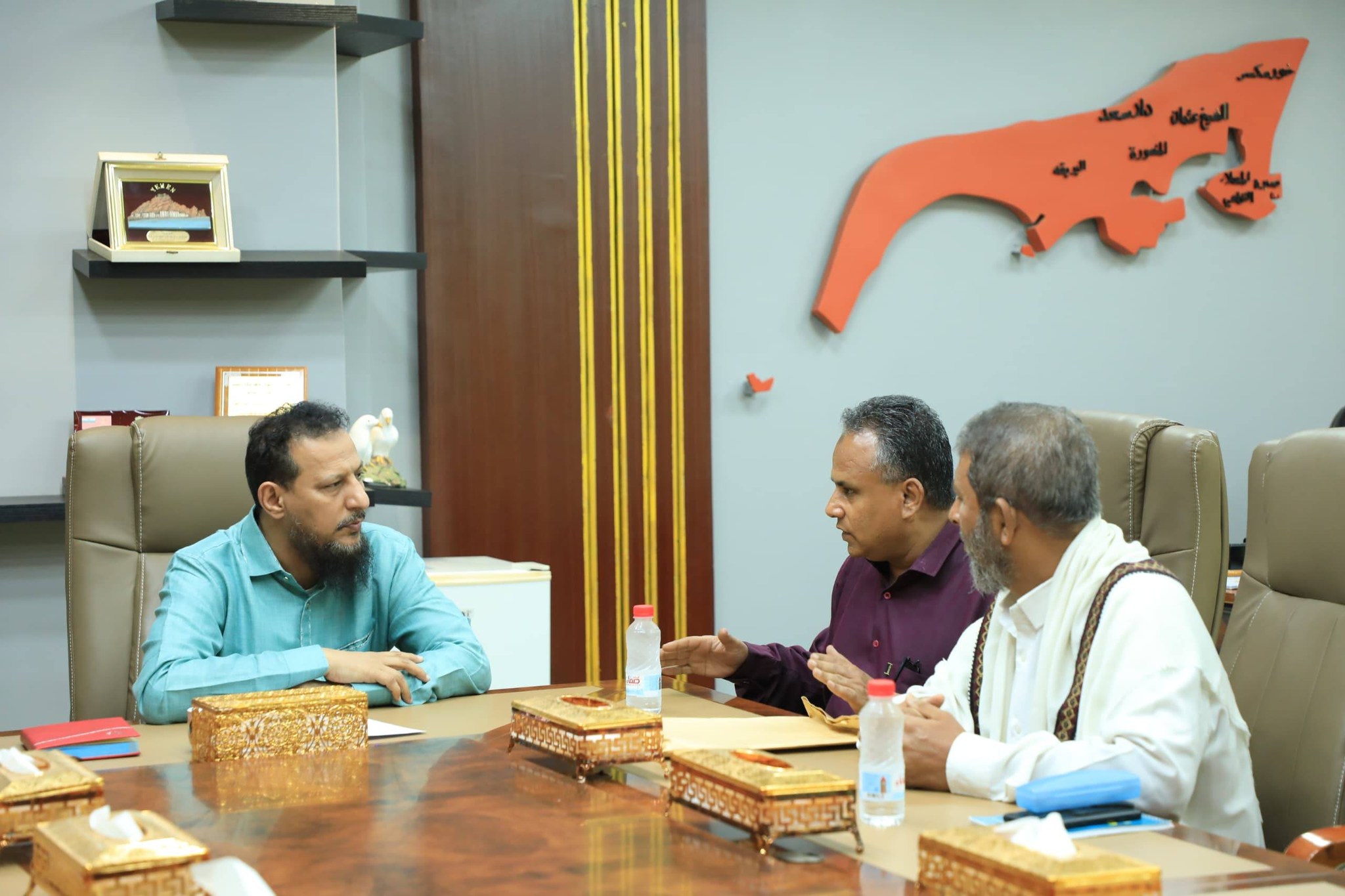 جاء ذلك خلال لقائه، اليوم، رئيس الهيئة العامة للمصائد السمكية بخليج عدن ولحج وأبين، الدكتور عبدالسلام أحمد، ومدير عام إدارة الموانئ ومراكز الإنزال بالهيئة، المهندس مكافح مفتاح، لمناقشة آليات تنظيم وتطوير العمل في القطاع السمكي، والارتقاء بأدائه بما يعزز إسهامه في دعم الاقتصاد المحلي.
