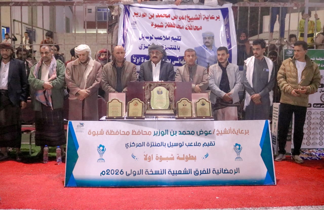 وشهدت البطولة مشاركة 16 فريقاً من مختلف مديريات محافظة شبوة، في تظاهرة رياضية رمضانية مميزة عكست الحضور المتنامي للأنشطة الرياضية والشبابية في المحافظة.