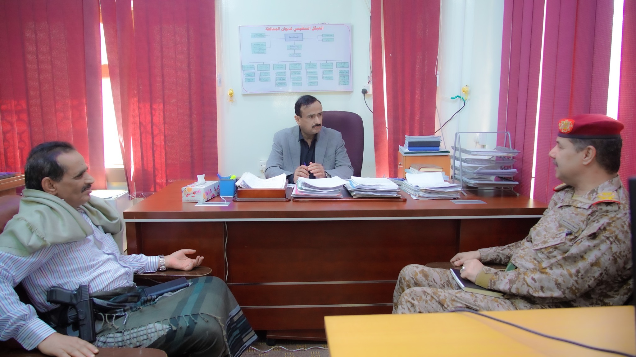 في نفس السياق، ناقش محافظ شبوة مع قائد محور عتق قائد اللواء 30 مشاه، اللواء عادل المصعبي، اوضاع المحور، والتحديات التي يواجهها، وجهود تحسين كفاءة الأداء العملياتي لكافة وحداته وتشكيلاته العسكرية، ورفع مستوى تنسيقها مع كافة القوات الامنية والعسكرية بالمحافظة، بما يعزز الاستجابة لمتطلبات المرحلة.