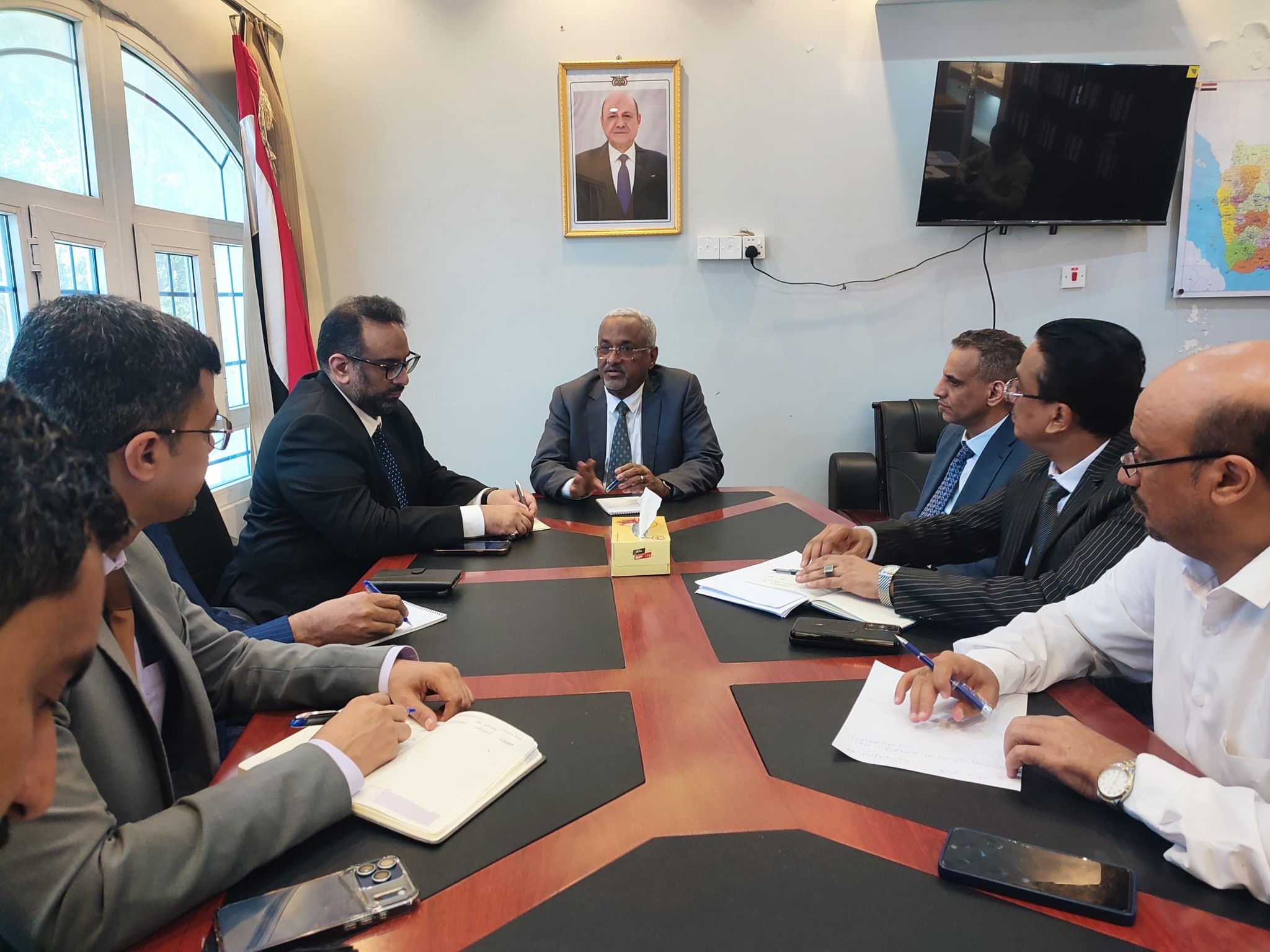 ناقش وزير الإدارة المحلية المهندس بدر باسلمة اليوم في العاصمة المؤقتة عدن، مع عمار العولقي الأمين العام للفريق الاقتصادي لمجلس القيادة واقع السلطات المحلية ومدى احتياجاتها من البرامج والمشاريع التنموية والعمل على تهيئة السلطات المحلية لدعم صلاحياتها وفقاً للتوجهات العامة لمجلس القيادة الرئاسي والحكومة، والعمل على خلق آليات وتواصل فعّال مع الوحدات الإدارية وبما يُسهم من تعزيز اللامركزية المالية والإدارية للسطات المحلية.