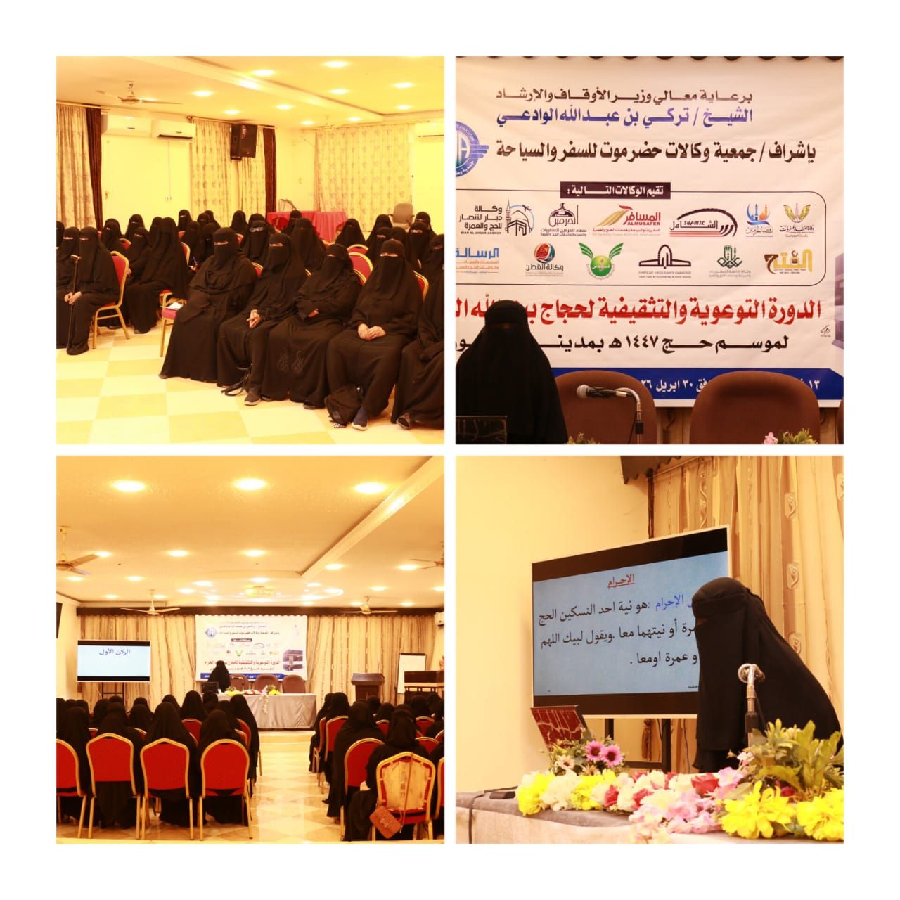 كما نظّمت عدد من وكالات الحج والعمرة المعتمدة، اليوم، في العاصمة المؤقتة عدن، دورة توعوية وتثقيفية لحجاج بيت الله الحرام لموسم الحج 1447هـ.
